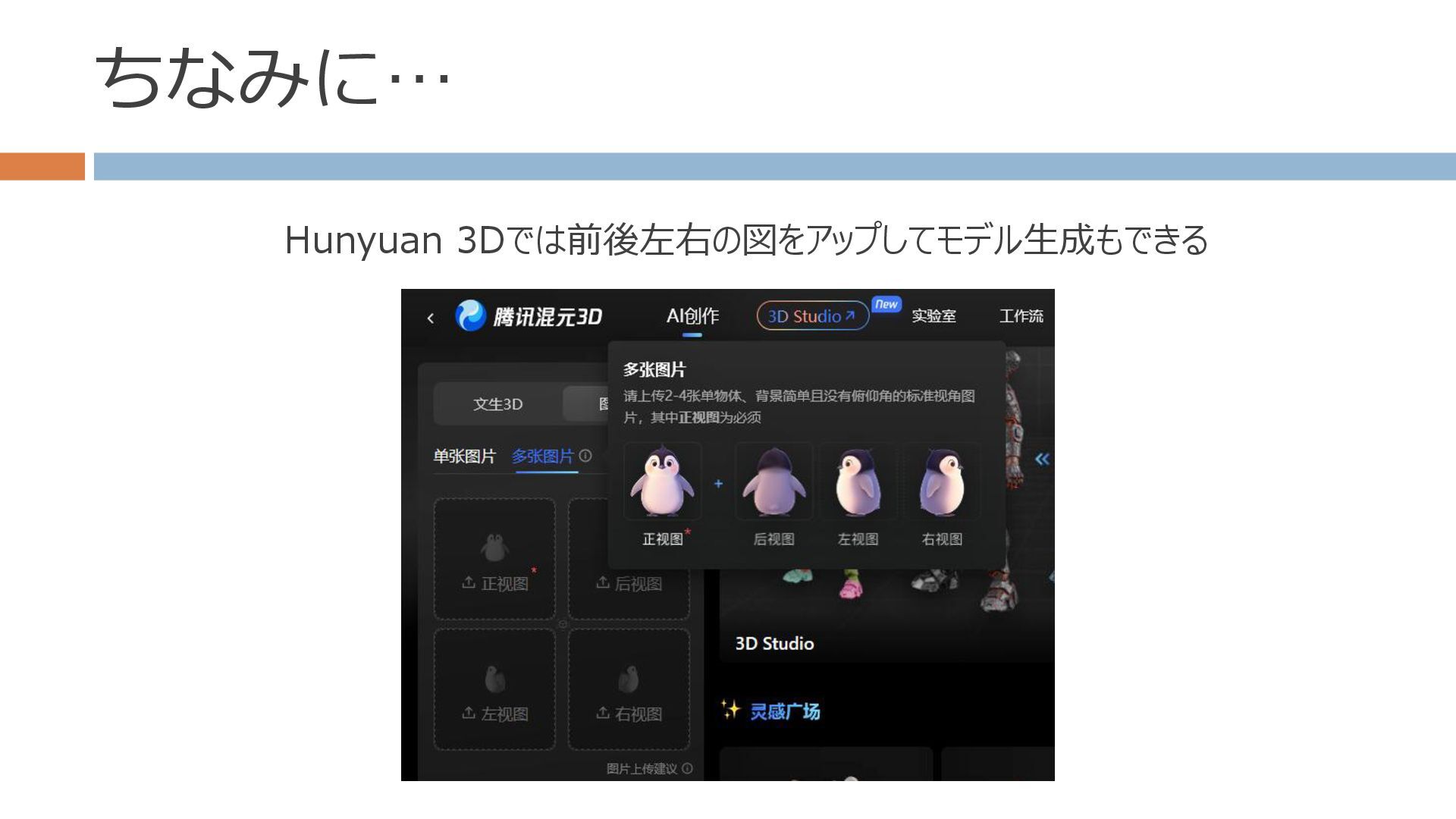 ちなみに… Hunyuan 3Dでは前後左右の図をアップしてモデル生成もできる