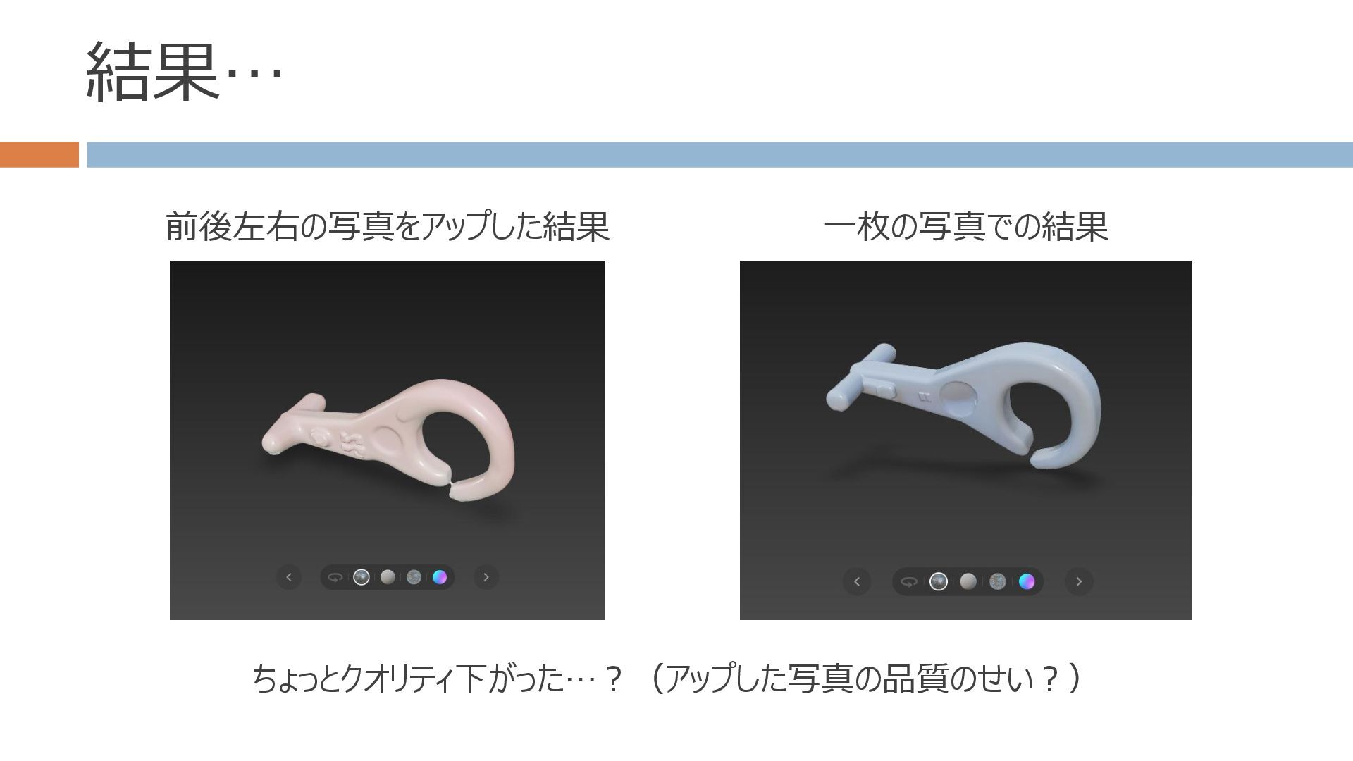 結果… ちょっとクオリティ下がった…?(アップした写真の品質のせい?) 前後左右の写真をアップした結果 一枚の写真での結果