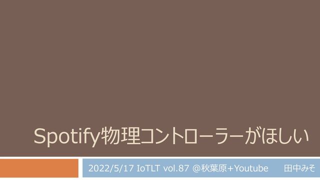 Spotify物理コントローラーがほしい 田中みそ 2022/5/17 IoTLT vol.87 @秋葉原+Youtube