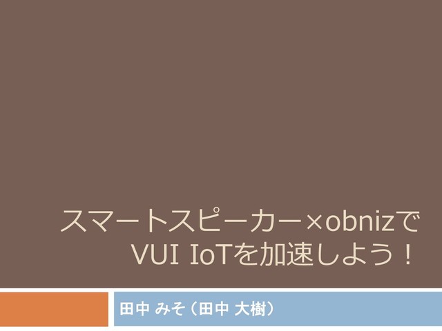 スマートスピーカー×obnizで VUI IoTを加速しよう! 田中 みそ (田中 大樹)