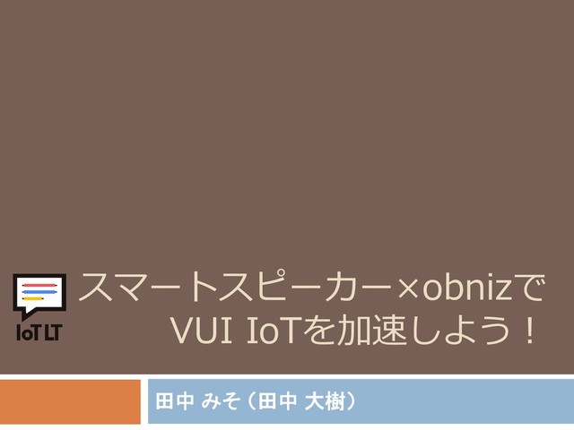 2018/9/18に行われたIoT縛りの勉強会! IoTLT vol.43 @LINEでの登壇資料です! obnizを使用したスマートスピーカースキルに関する内容になります。