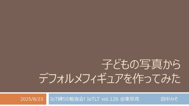 子どもの写真から デフォルメフィギュアを作ってみた 田中みそ 2025/8/23 IoT縛りの勉強会! IoTLT vol.126 @東京湾