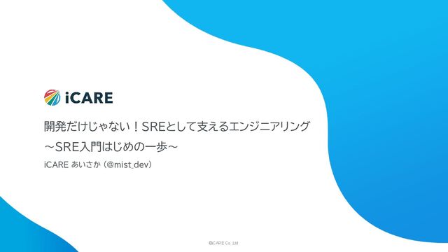 ©iCARE Co.,Ltd 開発だけじゃない!SREとして支えるエンジニアリング 〜SRE入門はじめの一歩〜 iCARE あいさか (@mist_dev)