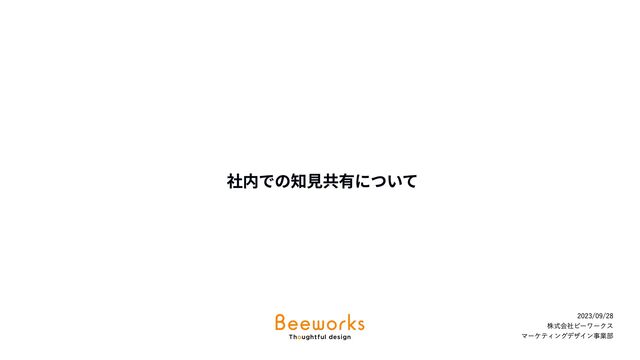 社内での知見共有について 2023/09/28 株式会社ビーワークス マーケティングデザイン事業部