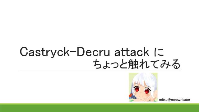 魔女のお茶会#5 (https://witchskeyparty.connpass.com/event/308427/) で発表したスライド CastryckとDecruによるSIKEの攻撃手法の概略を説明する