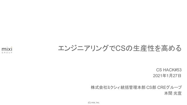 (C) mixi, Inc. CS HACK#53 2021年1月27日 株式会社ミクシィ 統括管理本部 CS部 CREグループ