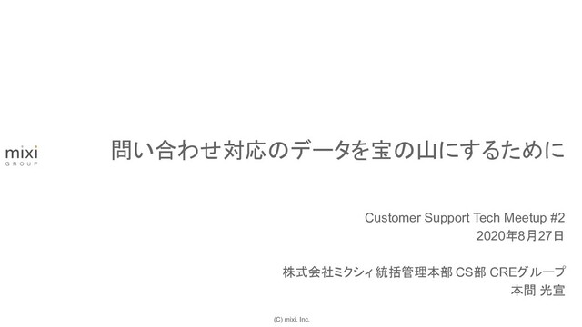 (C) mixi, Inc. Customer Support Tech Meetup #2 2020年8月27日 株式会社ミクシィ