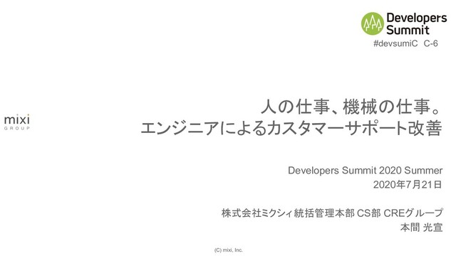 (C) mixi, Inc. Developers Summit 2020 Summer 2020年7月21日 株式会社ミクシィ 統括管理本部