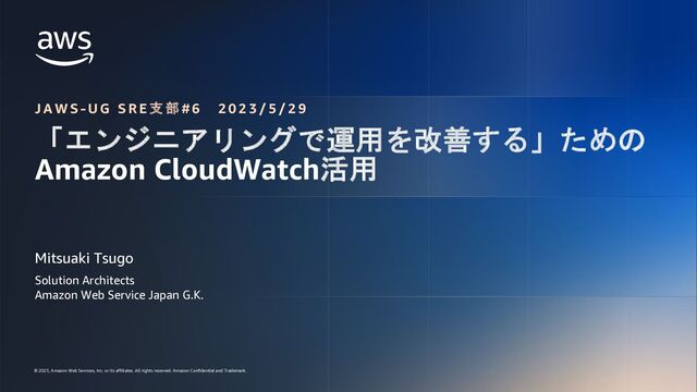 affiliates. All rights reserved. Amazon Confidential and Trademark. Site Reliability Engineering サービスの可用性、レイテンシ、パフォーマンス、効率性、変更管理、 モニタリング、緊急対応、キャパシティプランニング…