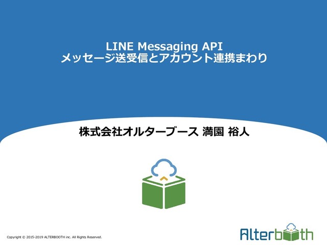 Copyright © 2015-2019 ALTERBOOTH inc. All Rights Reserved. LINE Messaging