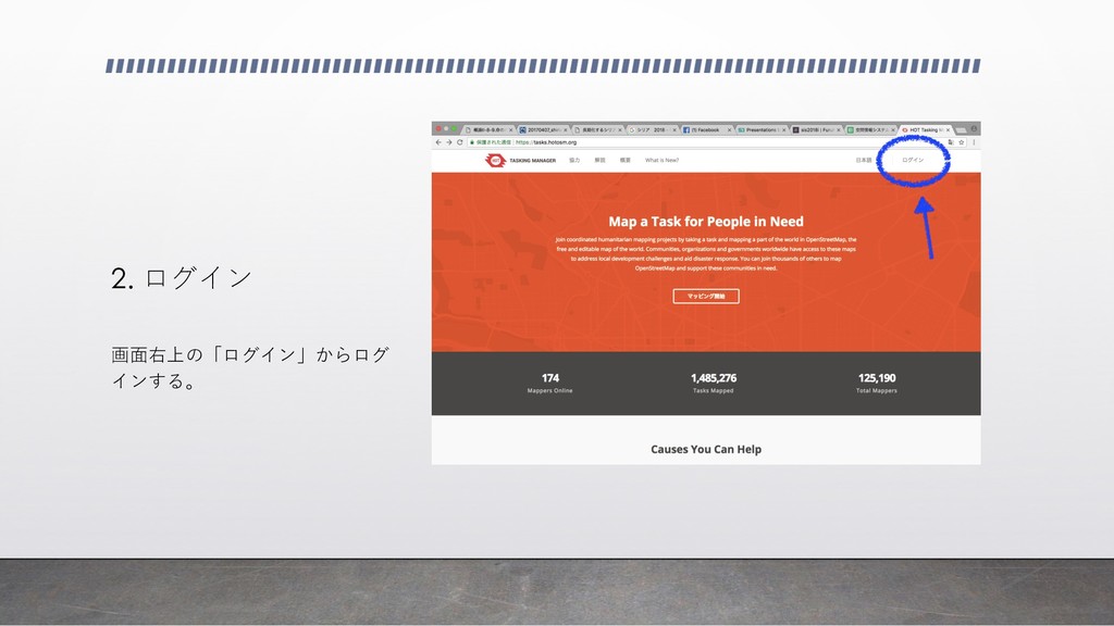 2. ログイン 画⾯右上の「ログイン」からログ インする。