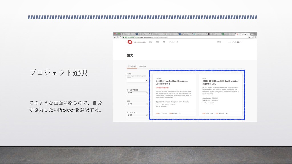 プロジェクト選択 このような画⾯に移るので、⾃分 が協⼒したいProjectを選択する。