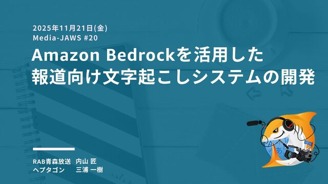 Amazon Bedrock を活用した 報道向け文字起こしシステムの開発 RAB 青森放送 ヘプタゴン 2025年11月21日(金) Media-JAWS #20
