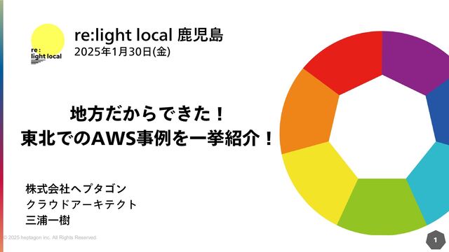 鹿児島 2025年1月30日(金) 株式会社ヘプタゴン クラウドアーキテクト 三浦一樹 地方だからできた! 東北でのAWS事例を一挙紹介!