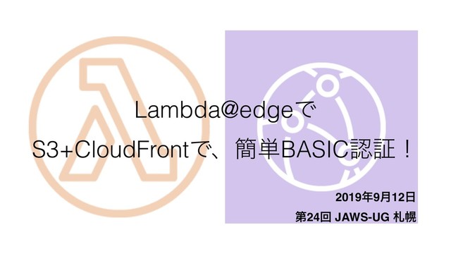 Get request and request headers const request = event.Records[0].cf.request; const headers = request.headers; // Configure authentication const authUser = 'user'; const authPass = 'pass'; // Construct the Basic Auth string const authString = 'Basic ' + new Buffer(authUser + ':' + authPass).toString('base64'); // Require Basic authentication if (typeof headers.authorization == 'undefined' || headers.authorization[0].value != authString) { const body = 'Unauthorized'; const response = { status: '401', statusDescription: 'Unauthorized', body: body, headers: { 'www-authenticate': [{key: 'WWW-Authenticate', value:'Basic'}] }, }; callback(null, response); } // Continue request processing if authentication passed callback(null, request); }; ͚ͩ͜͜ɺม͑Δ