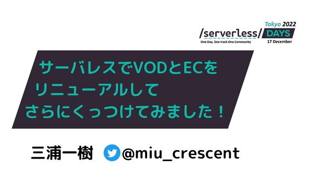サーバレスでVODとECを リニューアルして さらにくっつけてみました! 三浦一樹 @miu_crescent