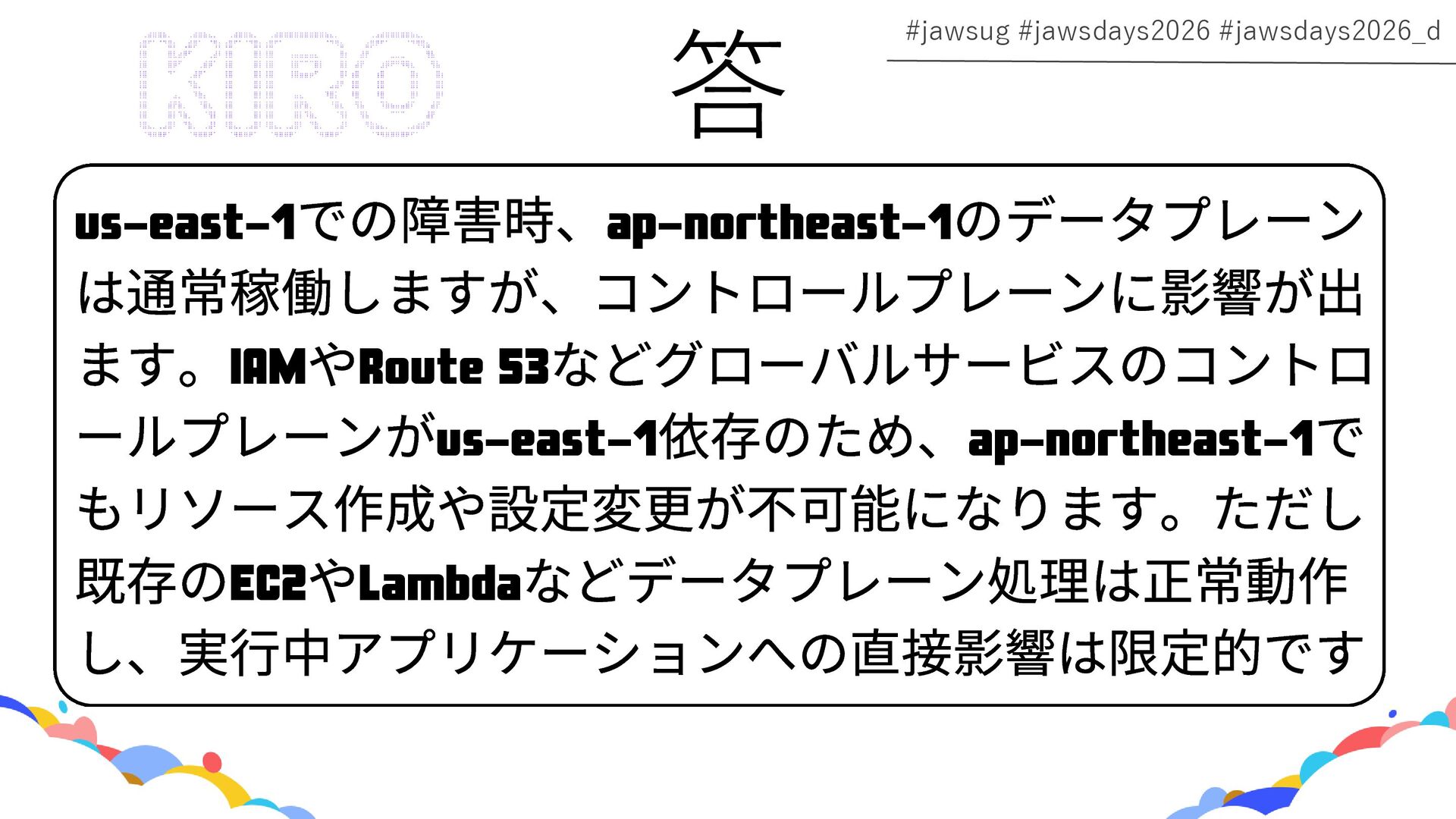 にどんな影響があるか 説明できるようになろう! Kazuki Miura / miumiu | Cloud Architect, Heptagon Inc. 2025 Japan AWS Ambassador / 2025 Japan AWS Top Engineer AWS Community Hero