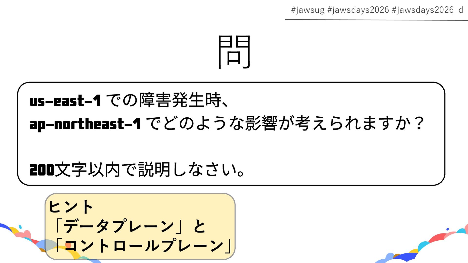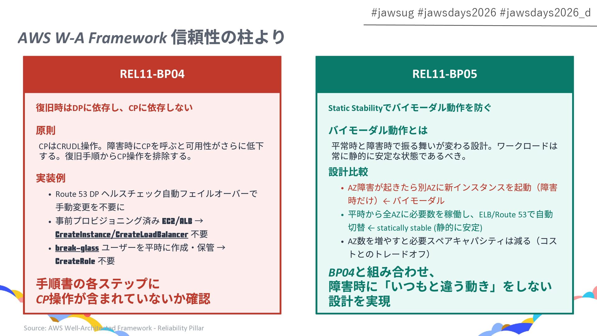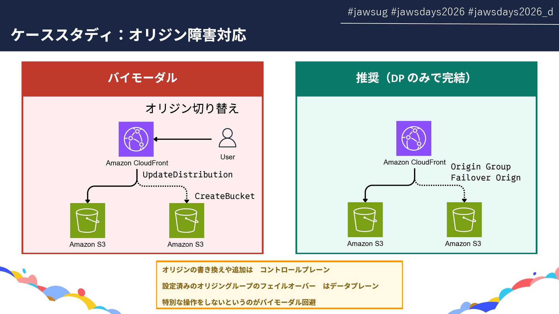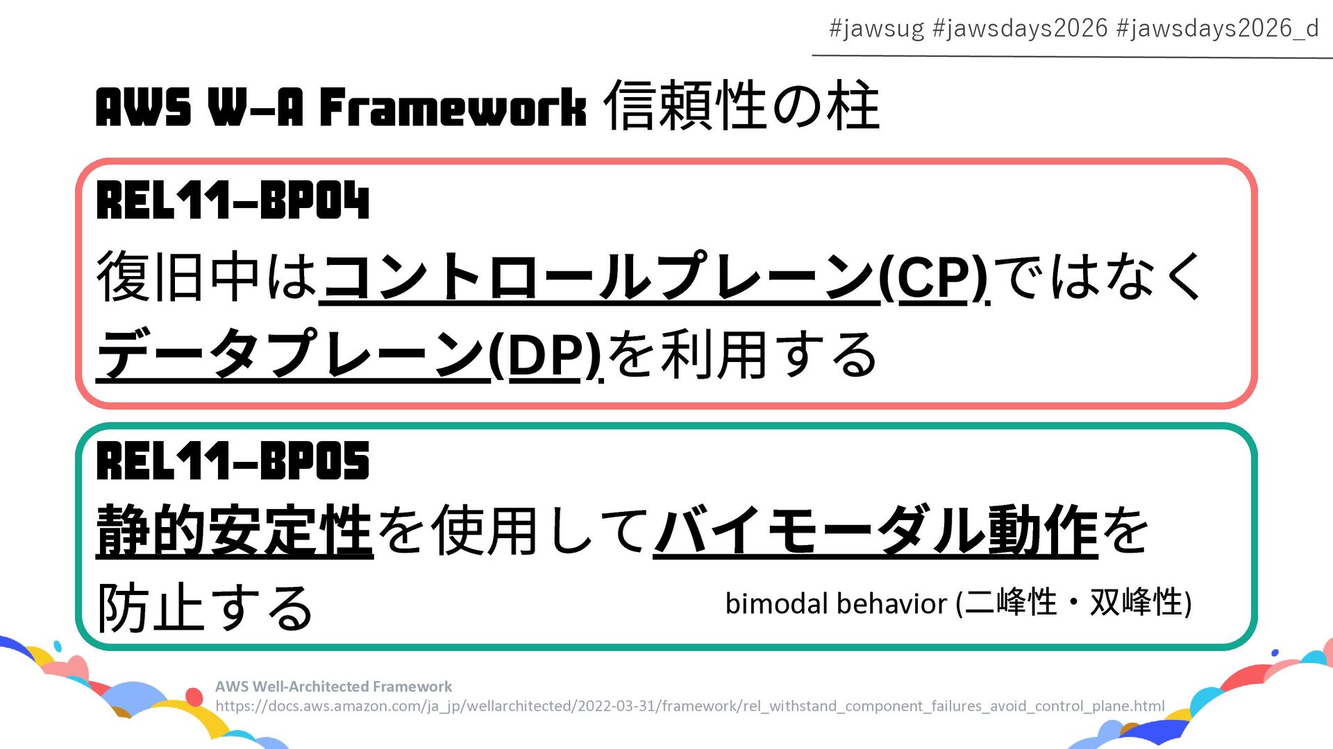 RDS Amazon EC2 Amazon EBS Amazon S3 Amazon SQS DynamoDB Amazon Route 53 AWS IAM CloudFront Control Plane Data Plane Control Plane Data Plane Control Plane Data Plane リージョン AZ リージョン リージョン パーティションに1つ Global コントロールプレーンとデータプレーンの関係性での分類 一部例外 一部例外