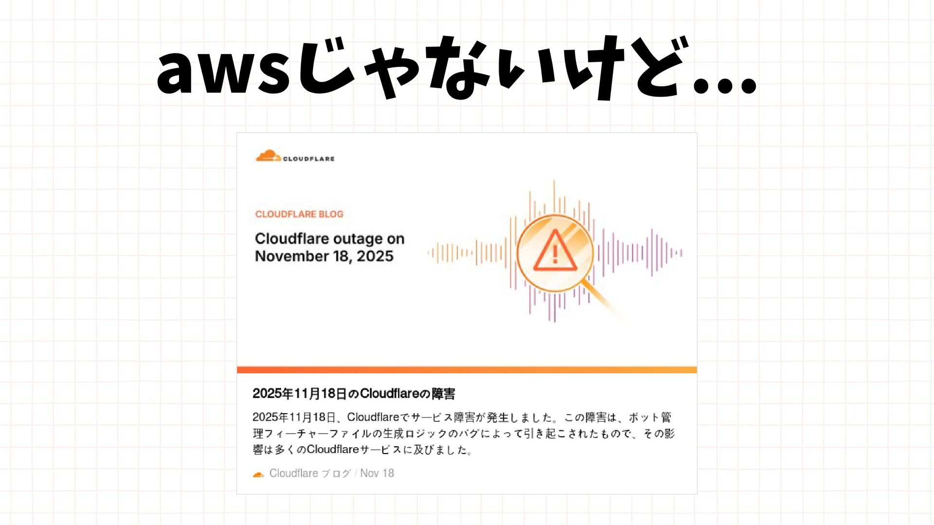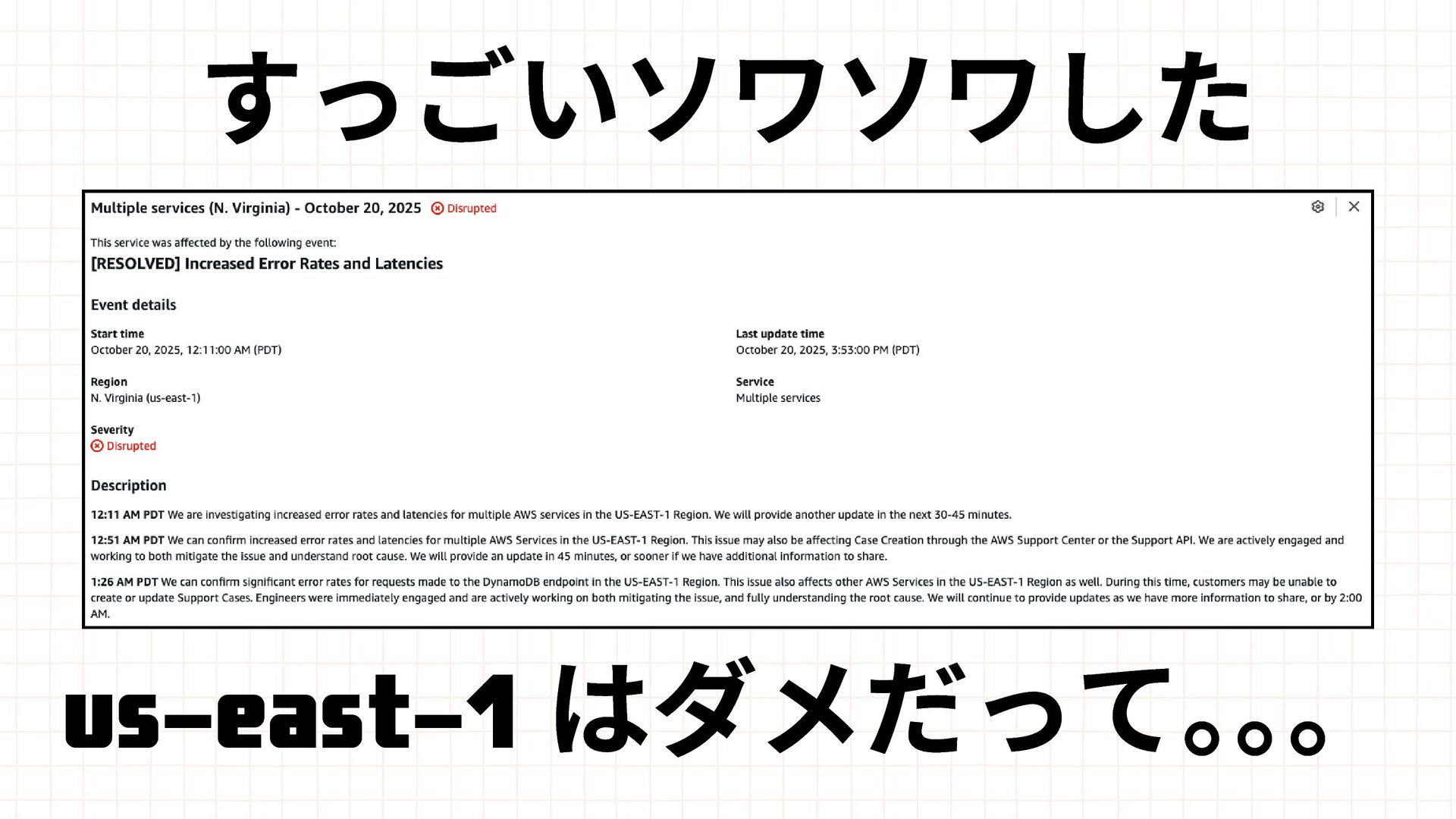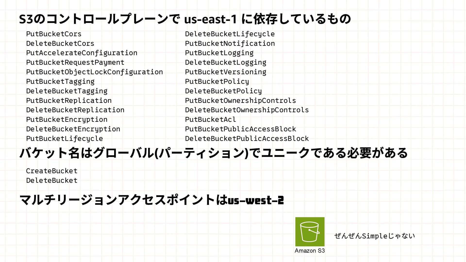 Amazon EBS Amazon S3 Amazon SQS DynamoDB Amazon Route 53 AWS IAM CloudFront Control Plane Data Plane Control Plane Data Plane Control Plane Data Plane リージョン AZ リージョン リージョン パーティションに1つ Global コントロールプレーンとデータプレーンの関係性での分類 一部例外