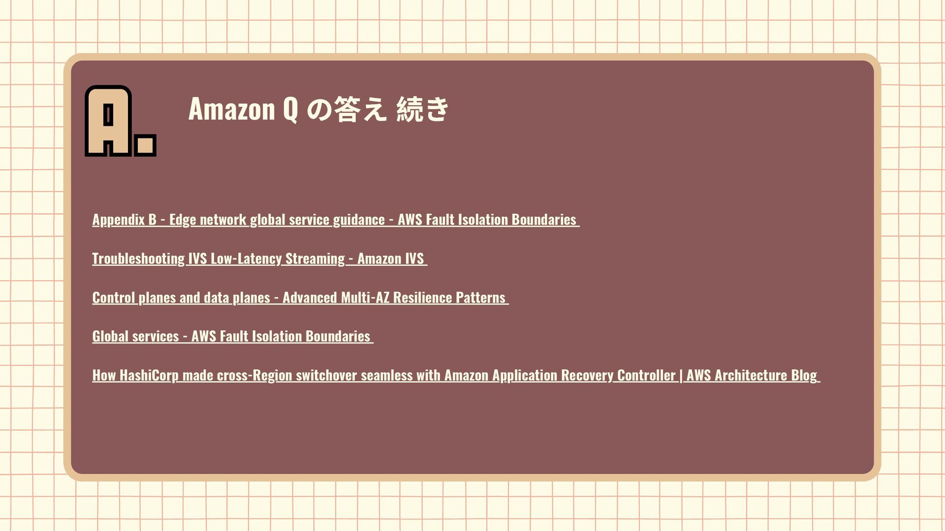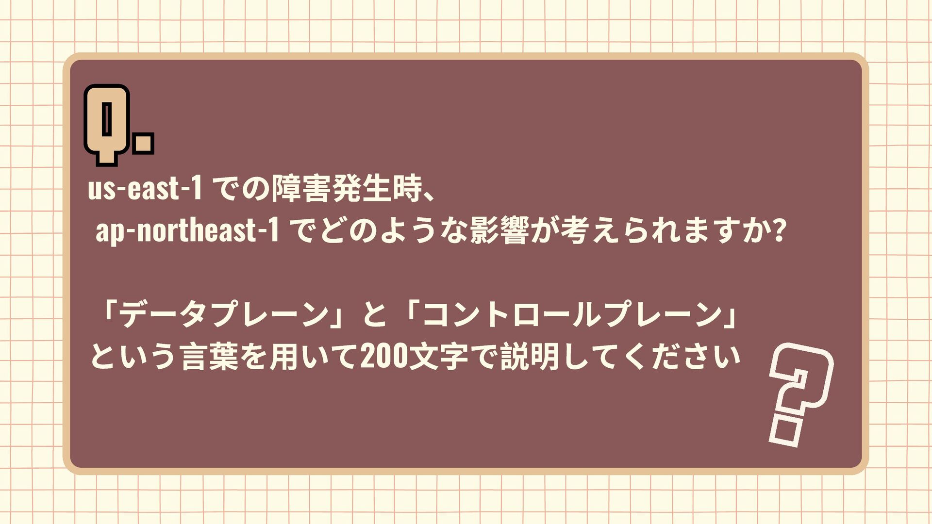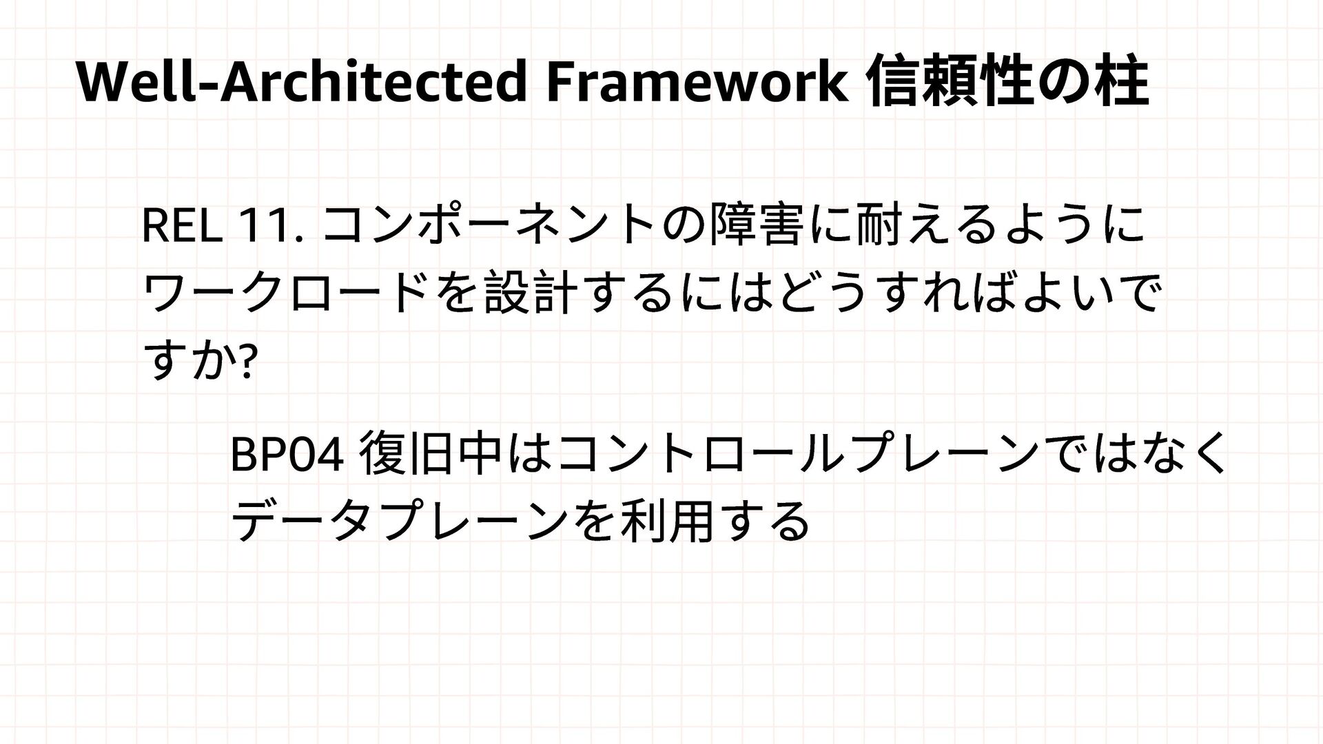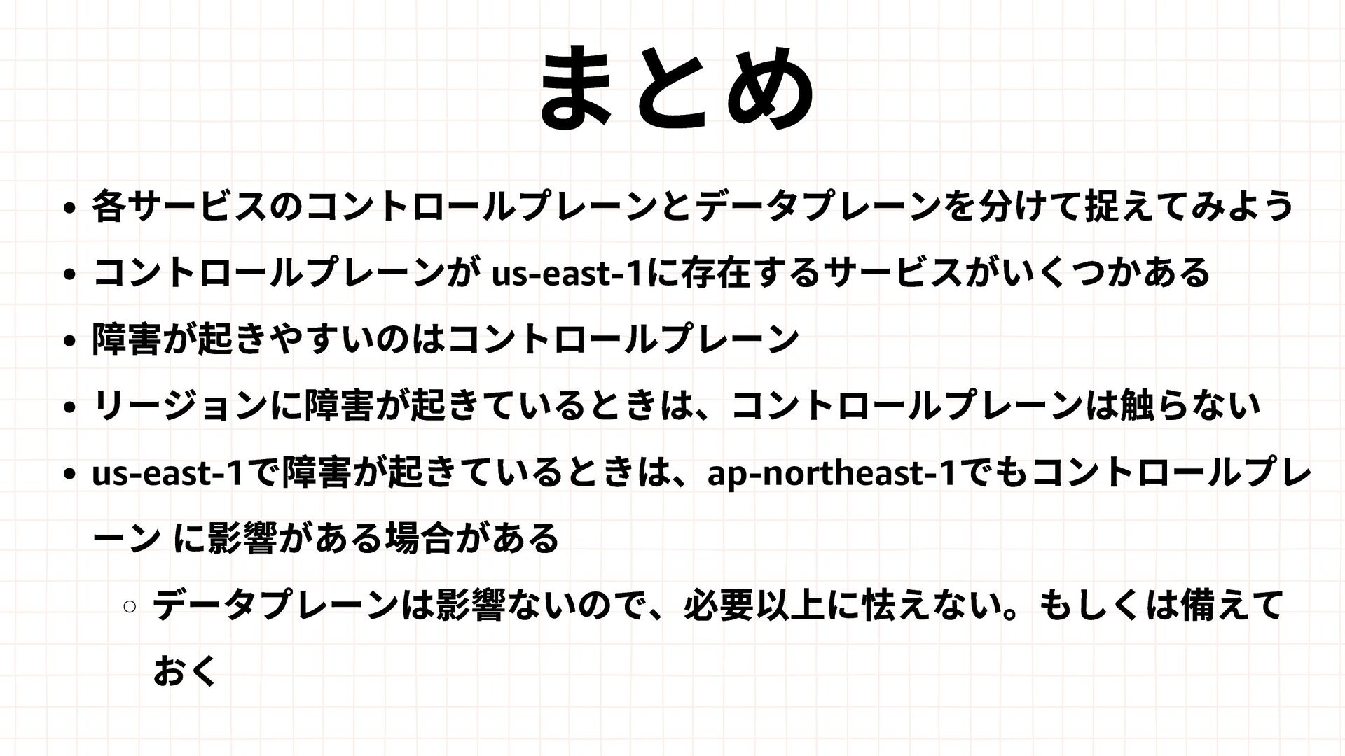 Amazon EBS Amazon S3 Amazon SQS DynamoDB Amazon Route 53 AWS IAM CloudFront Control Plane Data Plane Control Plane Data Plane Control Plane Data Plane リージョン AZ リージョン リージョン パーティションに1つ Global コントロールプレーンとデータプレーンの関係性での分類