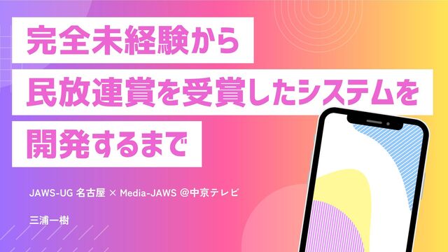民放連賞を受賞したシステムを 開発するまで JAWS-UG 名古屋 × Media-JAWS @中京テレビ 三浦一樹 完全未経験から