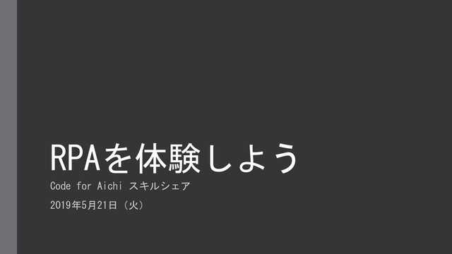 RPAを体験しよう Code for Aichi スキルシェア 2019年5月21日(火)