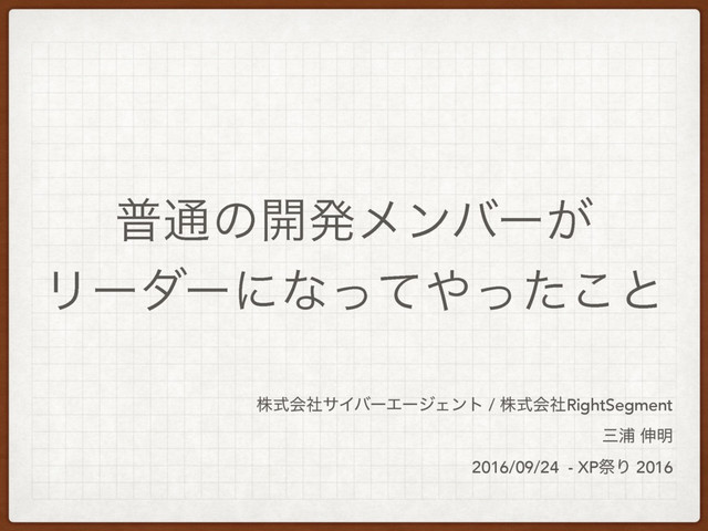 ී௨ͷ։ൃϝϯόʔ͕ Ϧʔμʔʹͳͬͯͬͨ͜ͱ גࣜձࣾαΠόʔΤʔδΣϯτ / גࣜձࣾRightSegment ࡾӜ ৳໌ 2016/09/24 - XPࡇΓ
