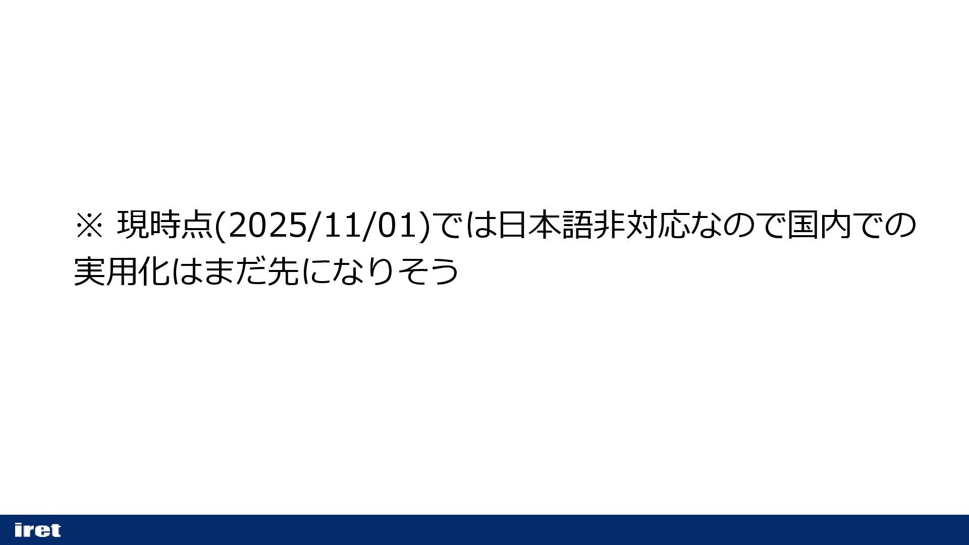 ※ 現時点(2025/11/01)では日本語非対応なので国内での 実用化はまだ先になりそう