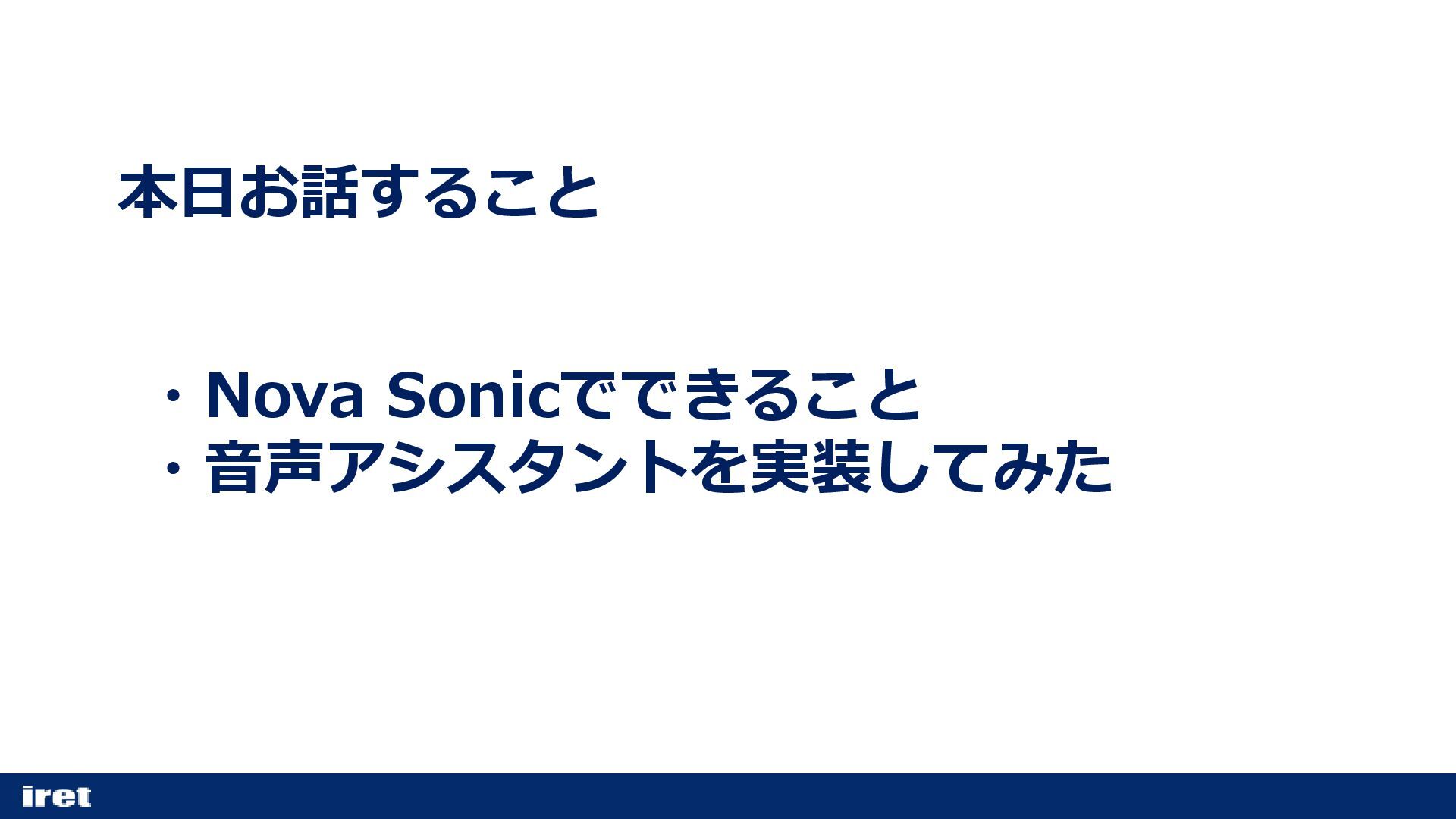 本日お話すること ・Nova Sonicでできること ・音声アシスタントを実装してみた
