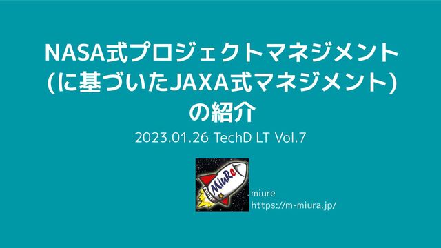 NASA式プロジェクトマネジメント (に基づいたJAXA式マネジメント) の紹介 2023.01.26 TechD LT Vol.7 miure https://m-miura.jp/