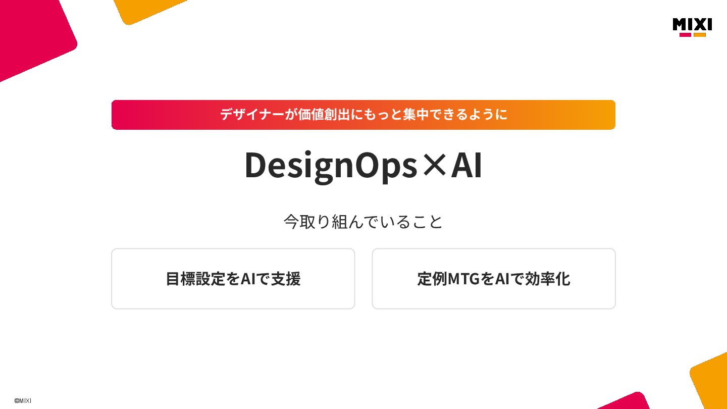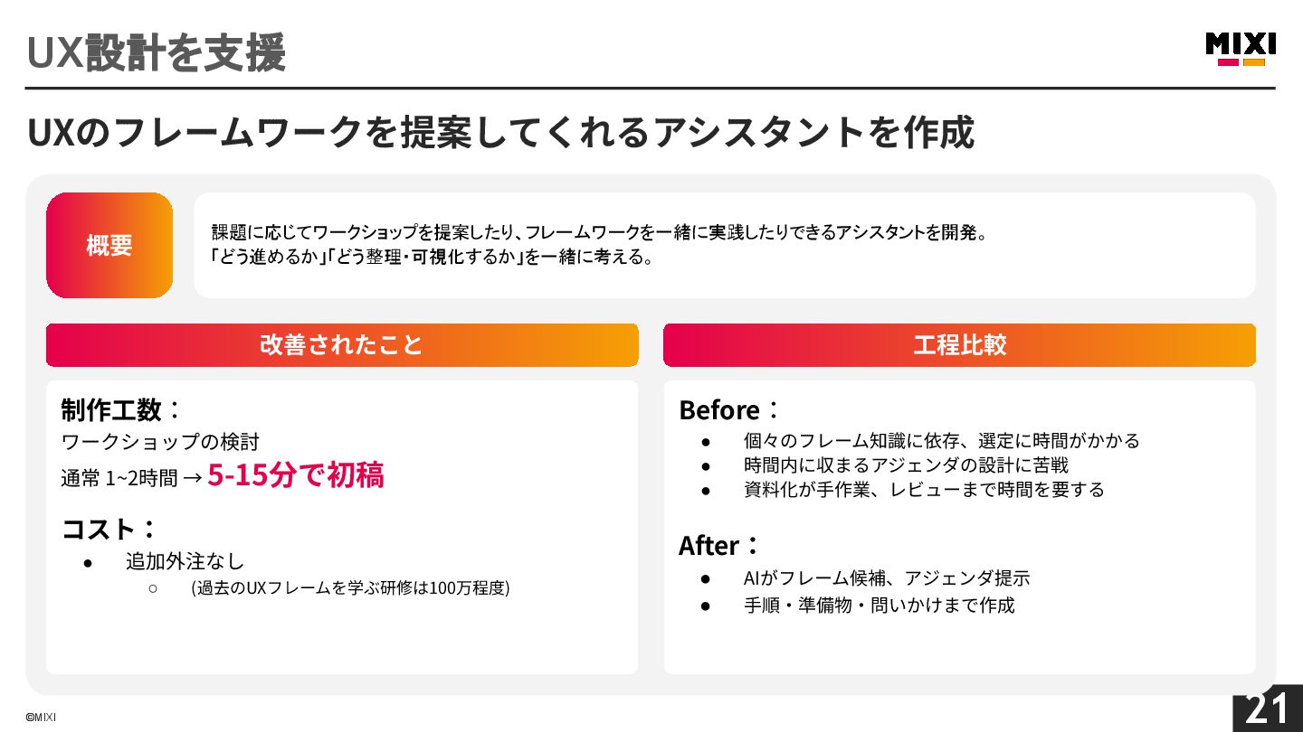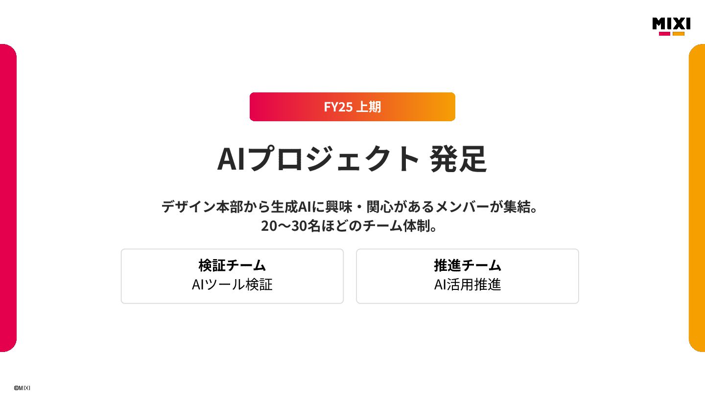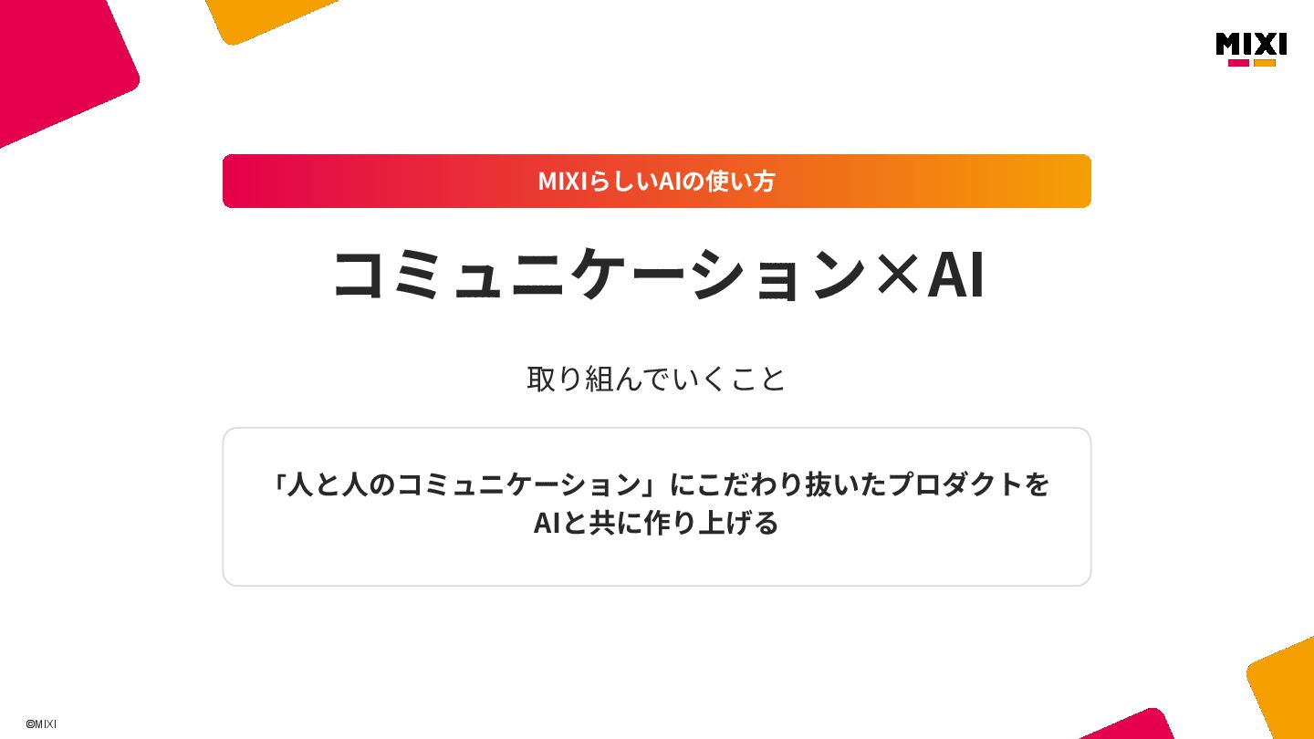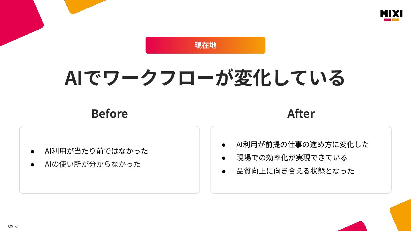 MIXIの横断デザイン組織であるデザイン本部のUI UXを司る部署が1年以上にわたり取り組んできたAI活用・検証の実践事例を起点に、AI活用の成功・失敗のリアルな現場の声を共有。