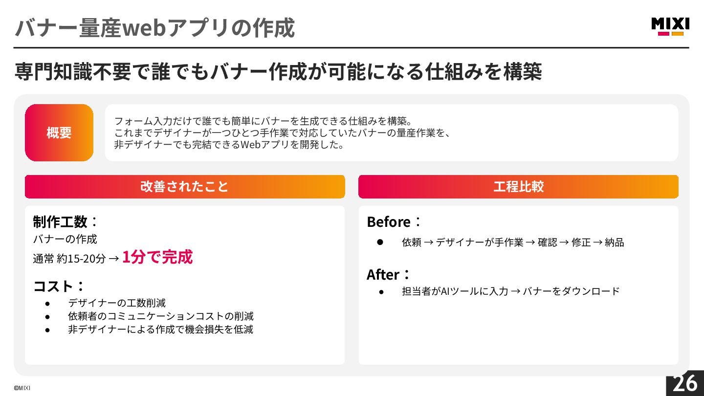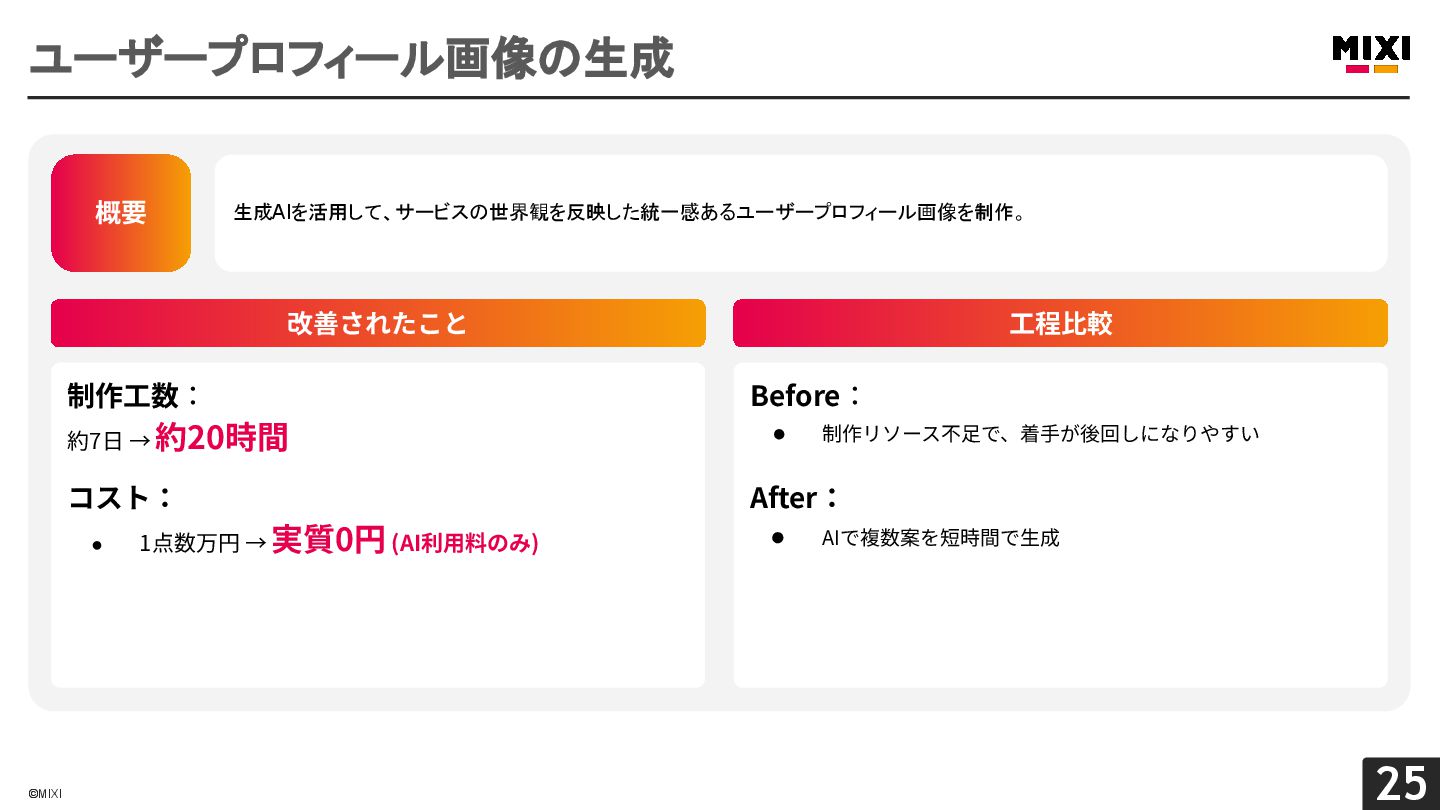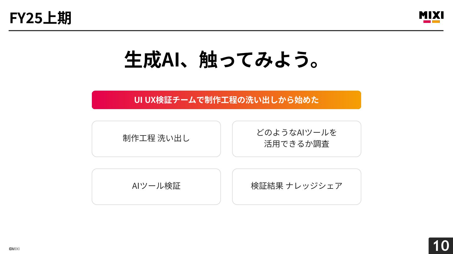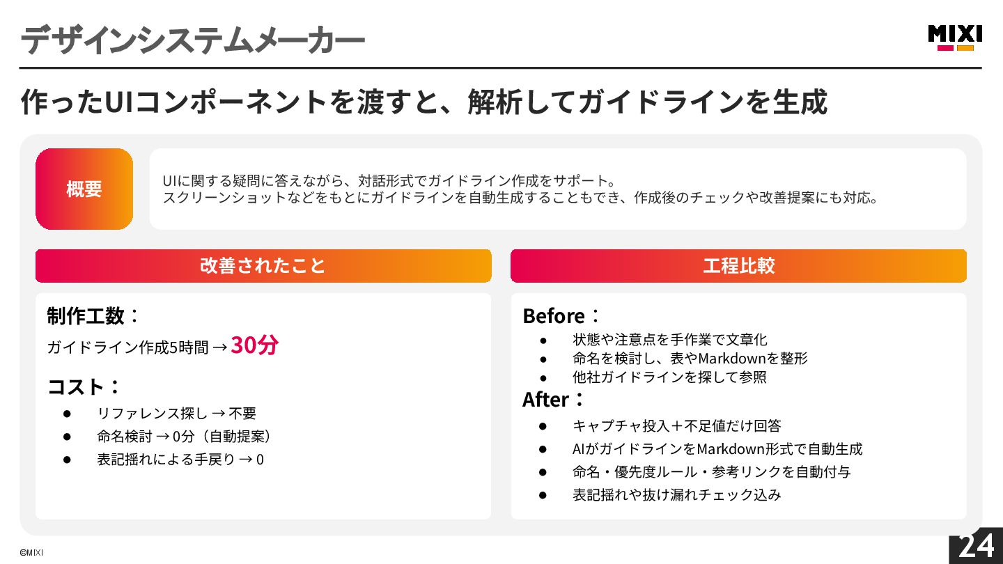 MIXIの横断デザイン組織であるデザイン本部のUI UXを司る部署が1年以上にわたり取り組んできたAI活用・検証の実践事例を起点に、AI活用の成功・失敗のリアルな現場の声を共有。