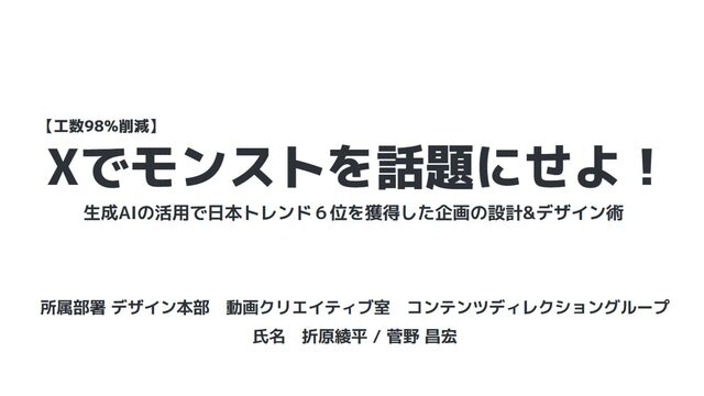 生成AIを活用したXの投稿の実例と制作フローをご紹介。低コストでインパクトを生む企画・デザインの工夫を現場視点でお伝えします。