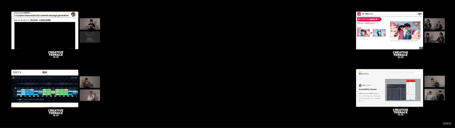 MIXI DESIGNはAIを積極的に活用しています。この取り組みの象徴が、半期に一度開催しているAI発表会。これまで3回にわたり、デザイナーやディレクターやフロントエンドエンジニアが“みんなでワイワイ”取り組み、“祭り型の学び合い”の場を作ってきました。この取り組みがどのように共創の輪を広げ、組織の競争力を育てているのかを紹介します。