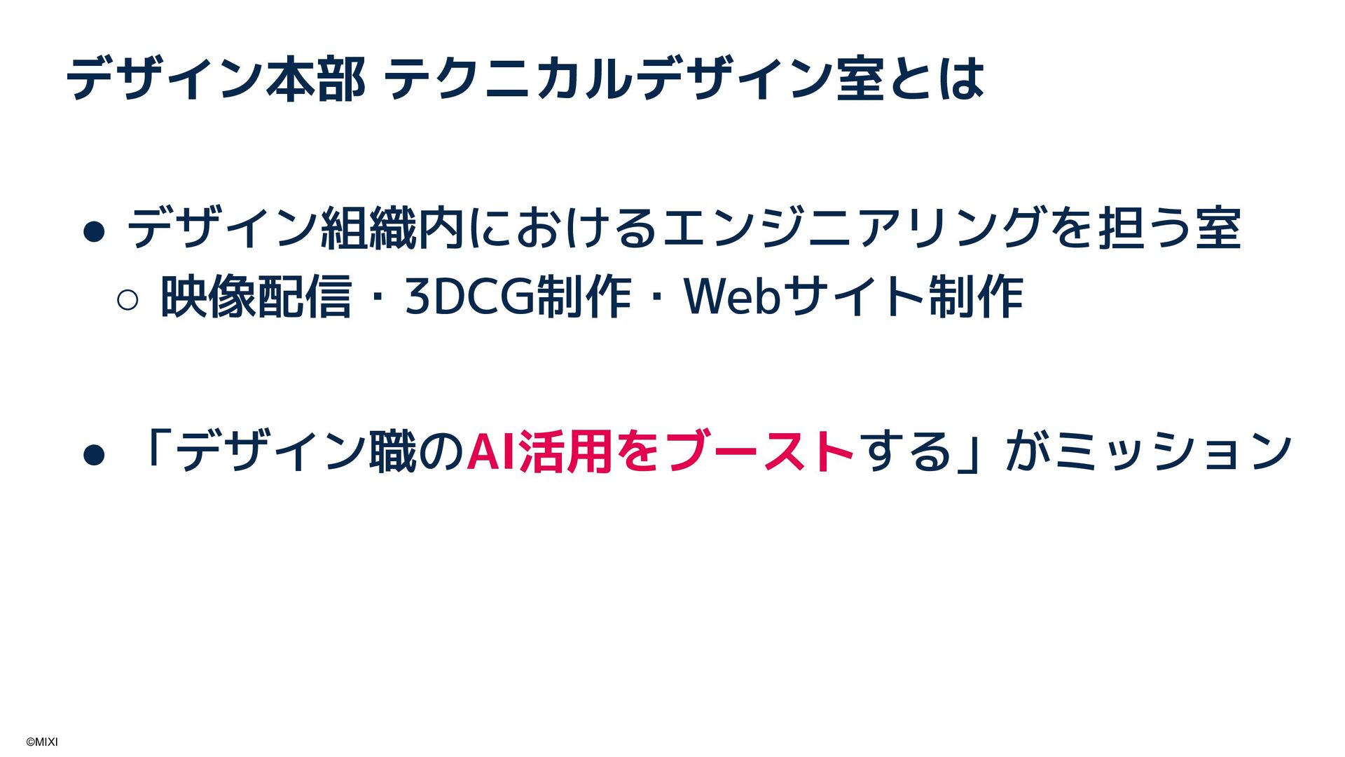 6. ©MIXI まとめ • デザイン組織での Claude Codeの活用紹介 ◦ エンジニア職 ▪ Webサイト・アプリケーション実装にフル活用