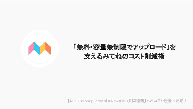 本資料は、6/7(水) に開催された 【MIXI × Money Forward × NewsPicks共同開催】AWSコスト最適化夏祭り における、みてねの伊東による発表資料です。 YouTube のアーカイブもありますので、是非、こちらもご覧ください。 https://youtube.com/live/5XY7KgzMU0E?feature=share