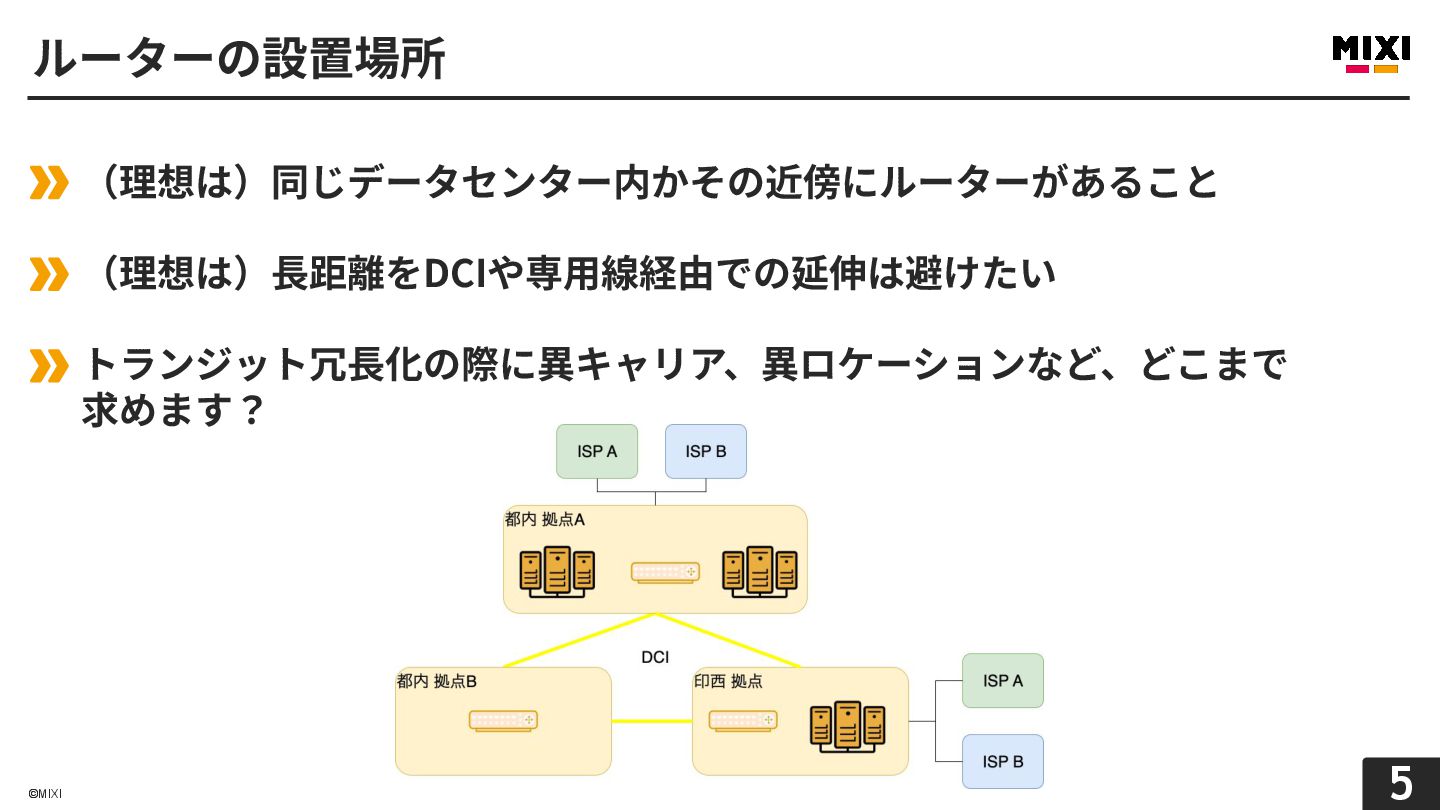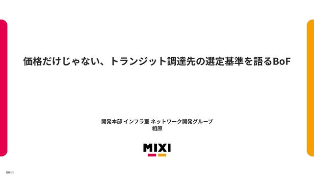 本セッションでは、トランジット回線を選定する際に価格以外で重視すべきポイントを、MIXI の実運用例を交えて紹介します。ルーター設置場所、フィルタリング機能、パーシャル/デフォルトルート提供など、ネットワーク品質を左右する要素を整理し、参加者とともに「譲れない選定基準」や運用課題について議論します。