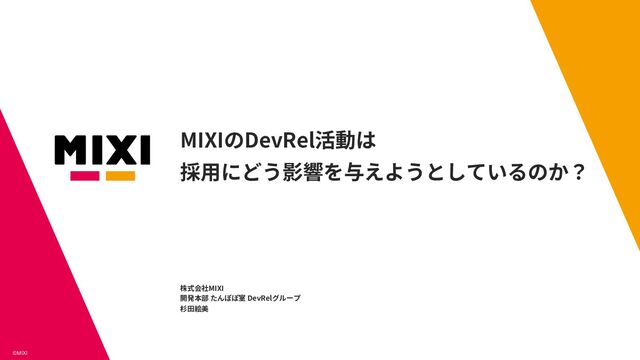5/8(水) に開催された『DevRel/Tokyo #92 〜採用とDevRel〜』での MIXI DevRel 杉田の発表資料です。