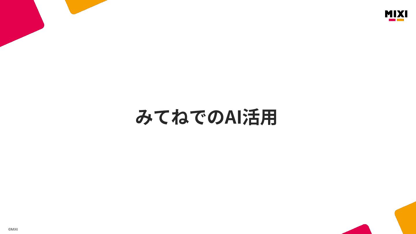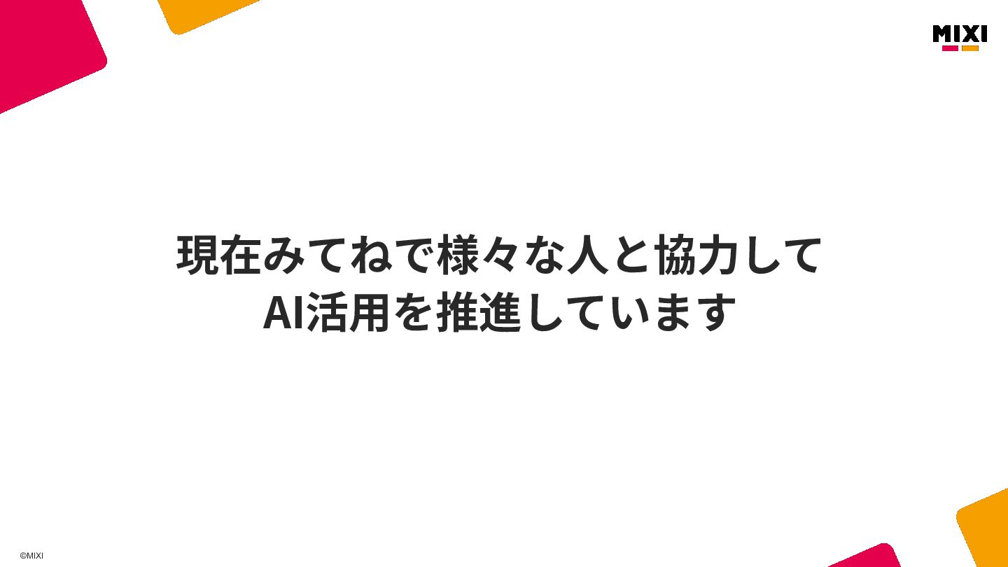 ©MIXI 現在みてねで様々な⼈と協⼒して AI活⽤を推進しています