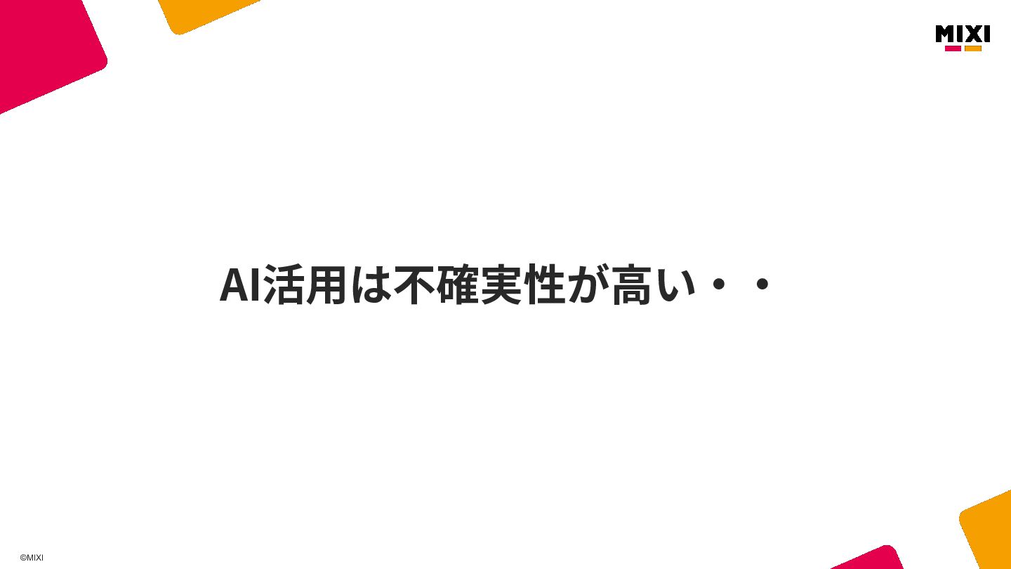 ©MIXI AI活⽤は不確実性が⾼い‧‧