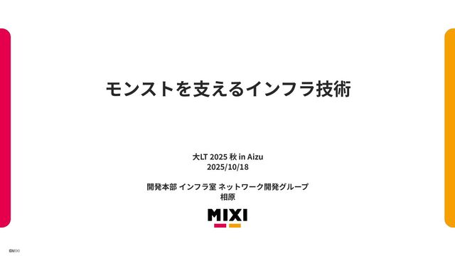 1 ©MIXI モンストを⽀えるインフラ技術 ⼤LT 2025 秋 in Aizu 2025/10/18 開発本部