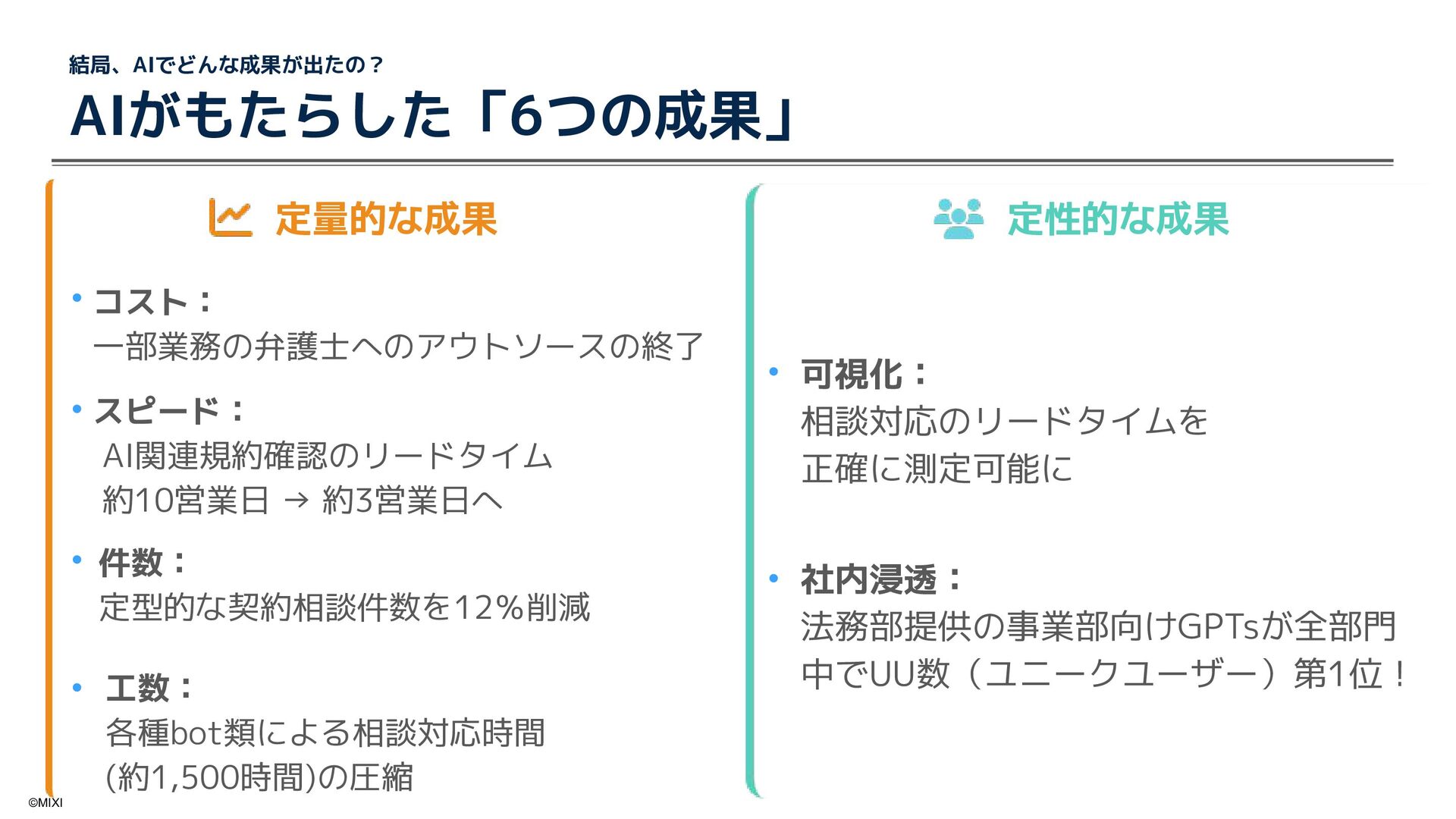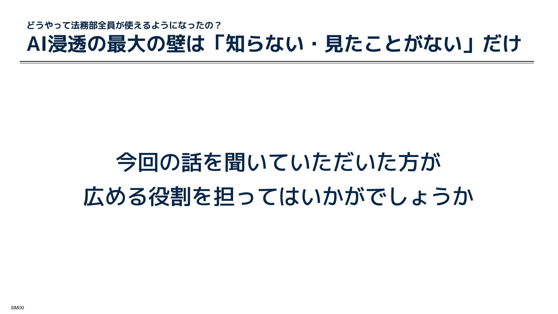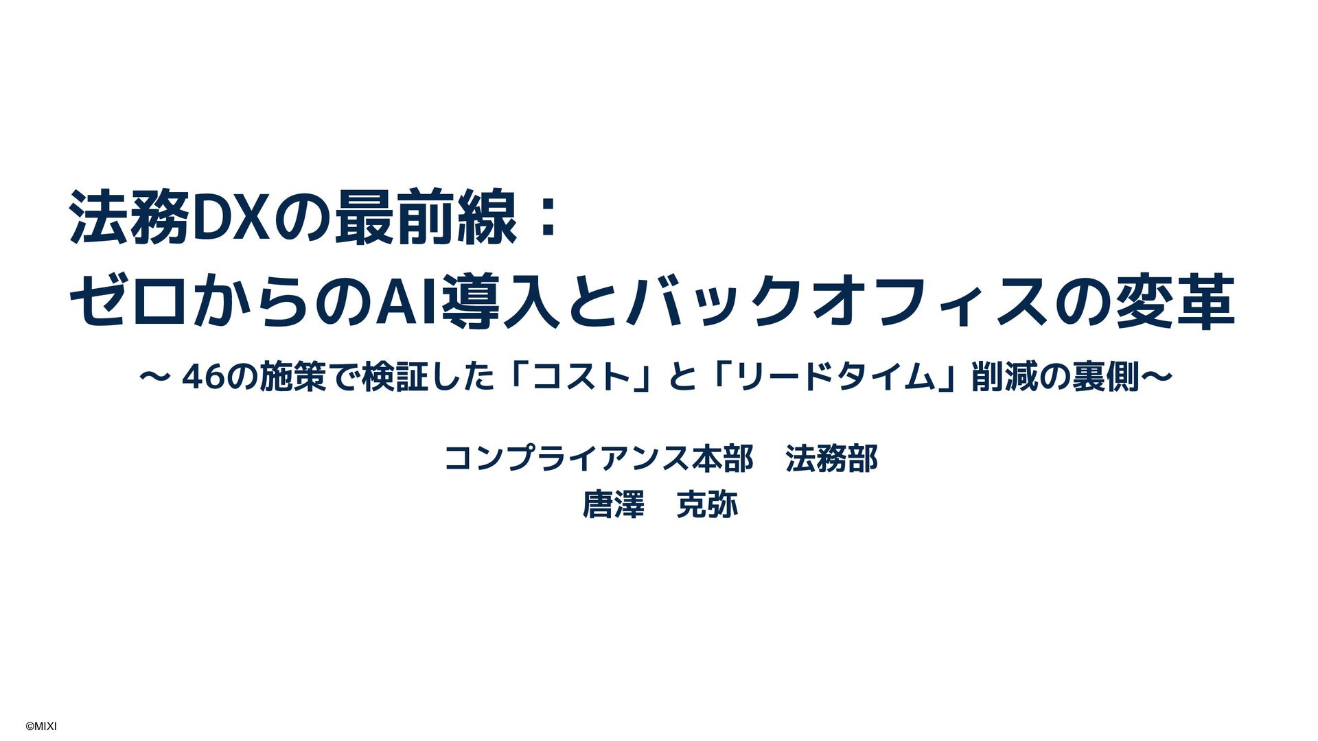 法務部門への導入初期の苦労や、コスト削減・リードタイム短縮を実現した核心的な施策を紹介します。「何をどう使うか」という基本から、組織変革をもたらす実践的ノウハウまで、具体的なプロセスと検証結果を詳説。単なるチャット利用に留まらない、バックオフィスDXを加速させるヒントを明かします。法務でもここまでできるのかという、実戦的な施策の数々をお伝えします。