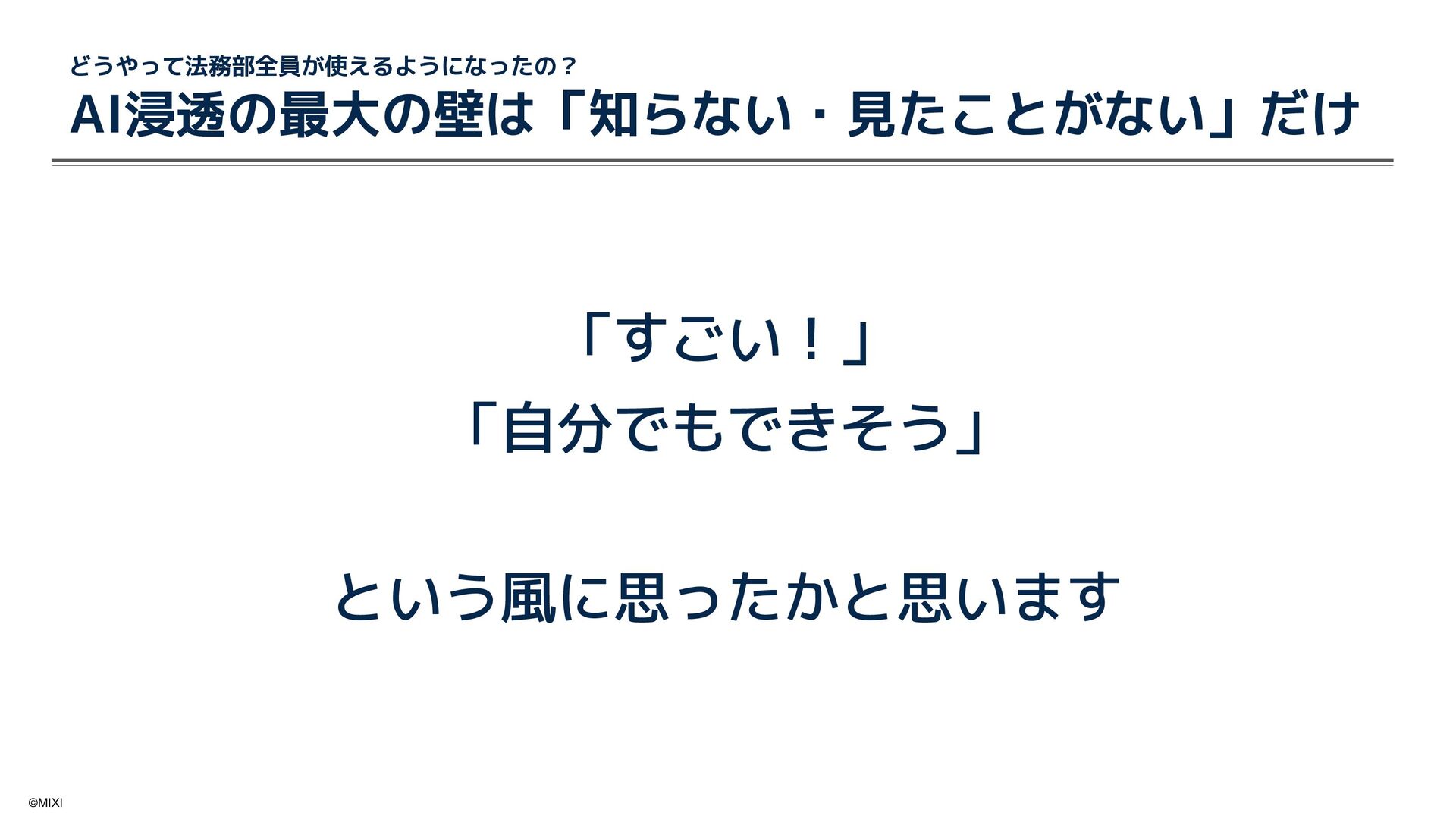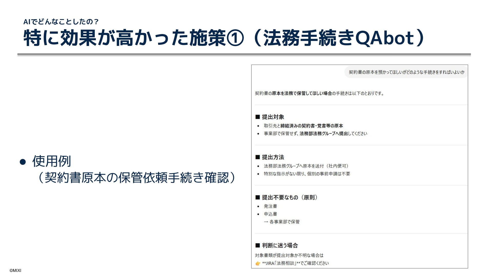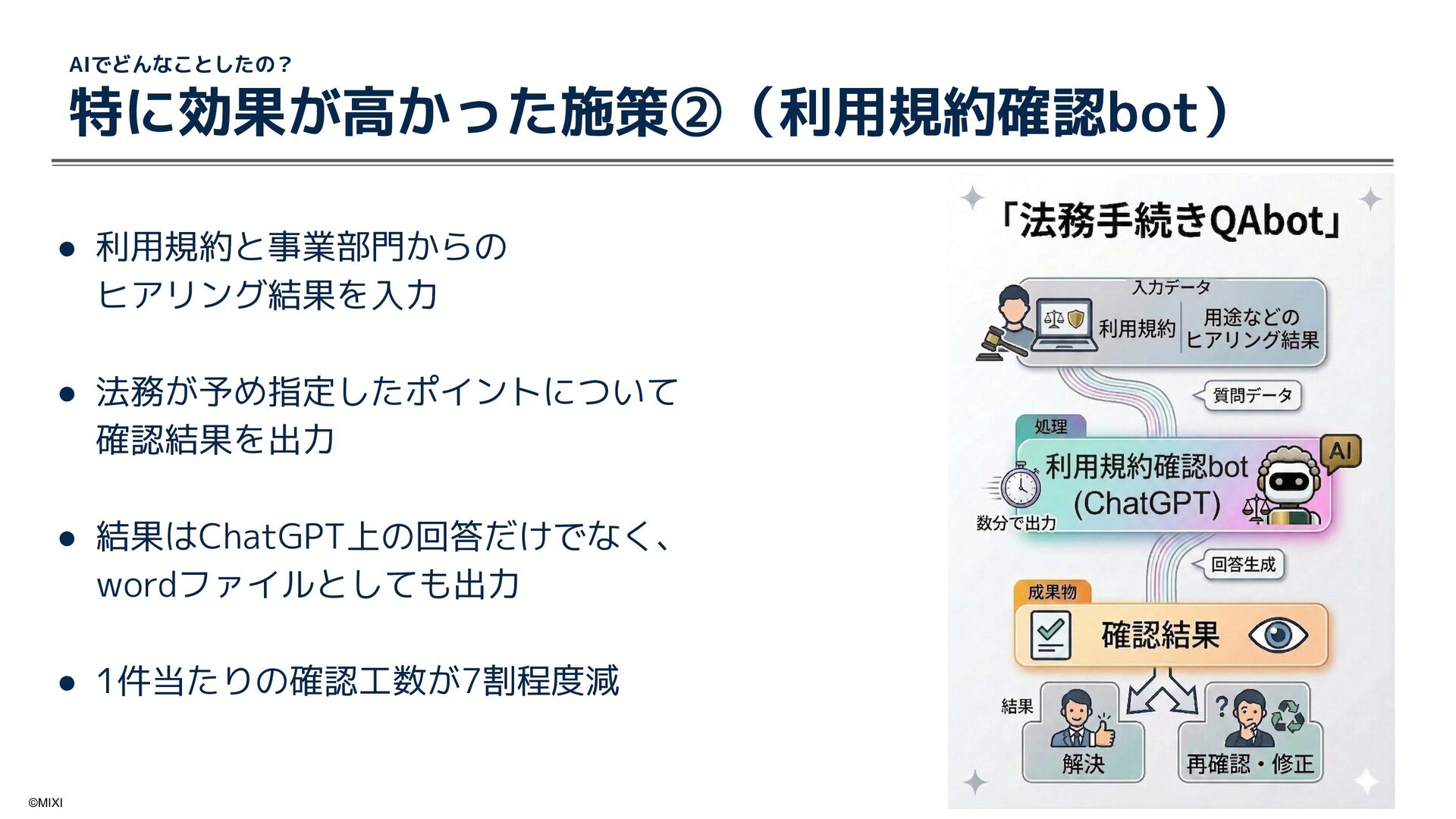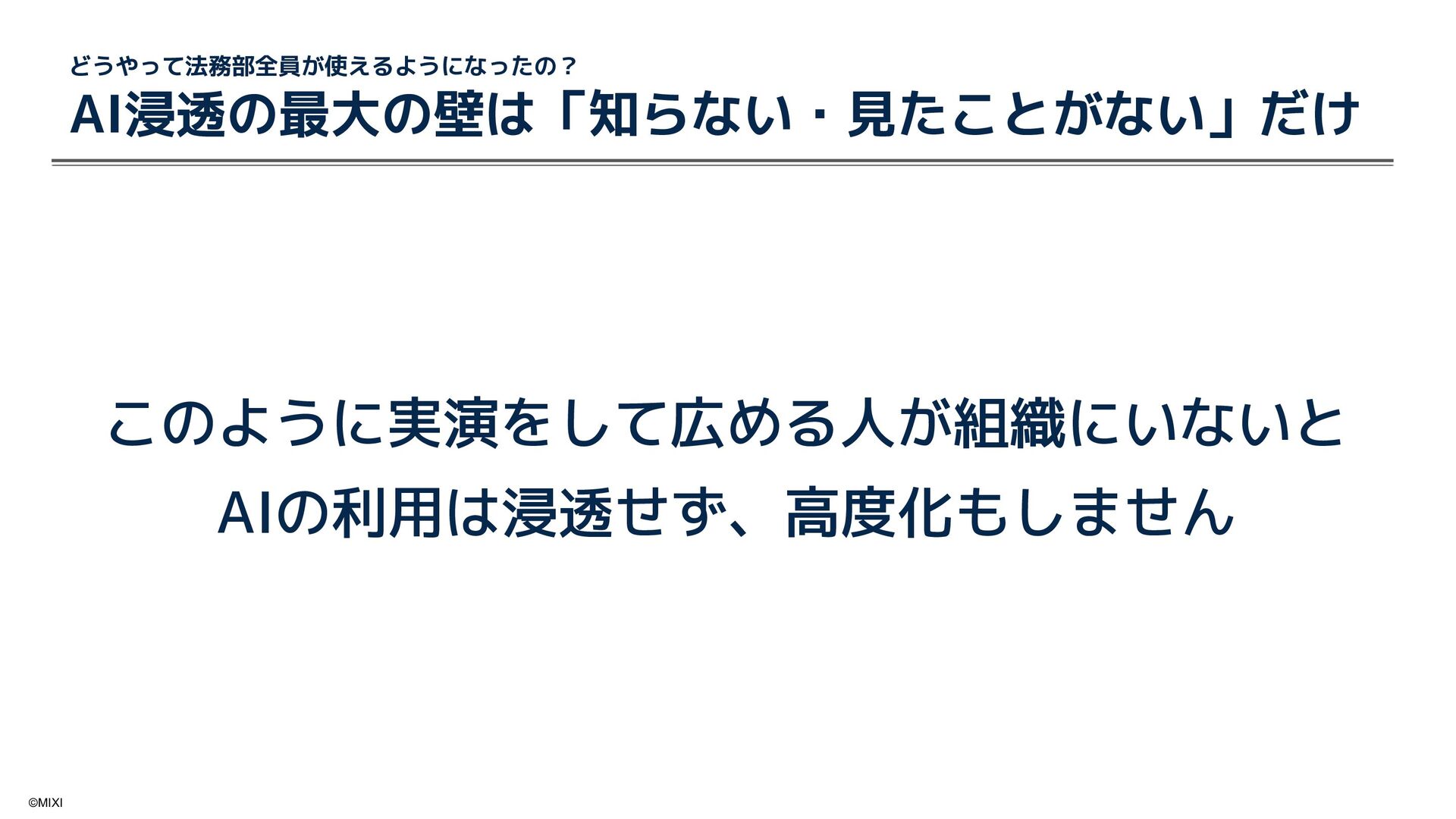法務部門への導入初期の苦労や、コスト削減・リードタイム短縮を実現した核心的な施策を紹介します。「何をどう使うか」という基本から、組織変革をもたらす実践的ノウハウまで、具体的なプロセスと検証結果を詳説。単なるチャット利用に留まらない、バックオフィスDXを加速させるヒントを明かします。法務でもここまでできるのかという、実戦的な施策の数々をお伝えします。