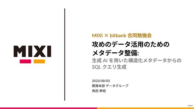 2. ©MIXI ⾃⼰紹介 開発本部 > CTO 室 > データグループ ⾓⽥ 孝昭(つのだ