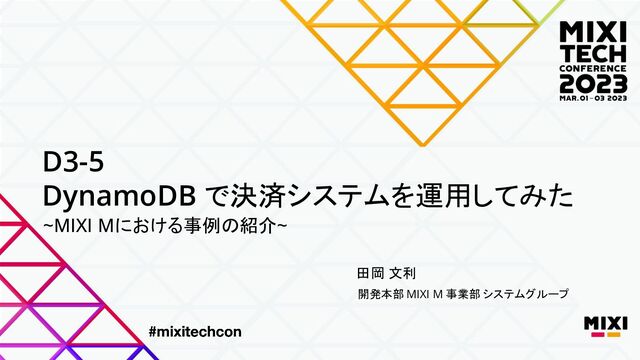MIXI TECH CONFERENCE 2023 にてお話した田岡の資料です。