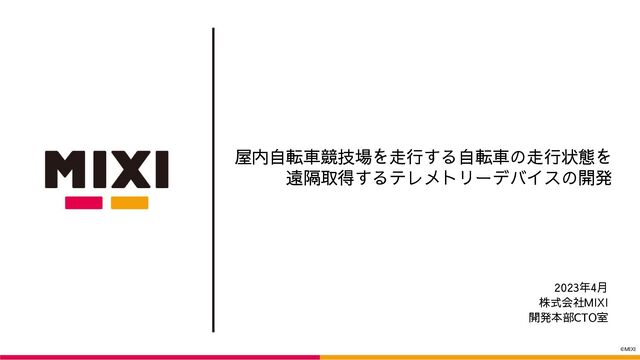 ©MIXI 屋内自転車競技場を走行する自転車の走行状態を 遠隔取得するテレメトリーデバイスの開発 2023年4月 株式会社MIXI 開発本部CTO室