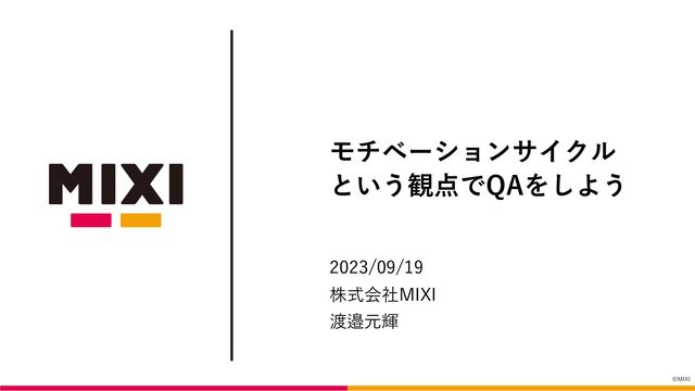 ©MIXI モチベーションサイクル という観点でQAをしよう 2023/09/19 株式会社MIXI 渡邉元輝