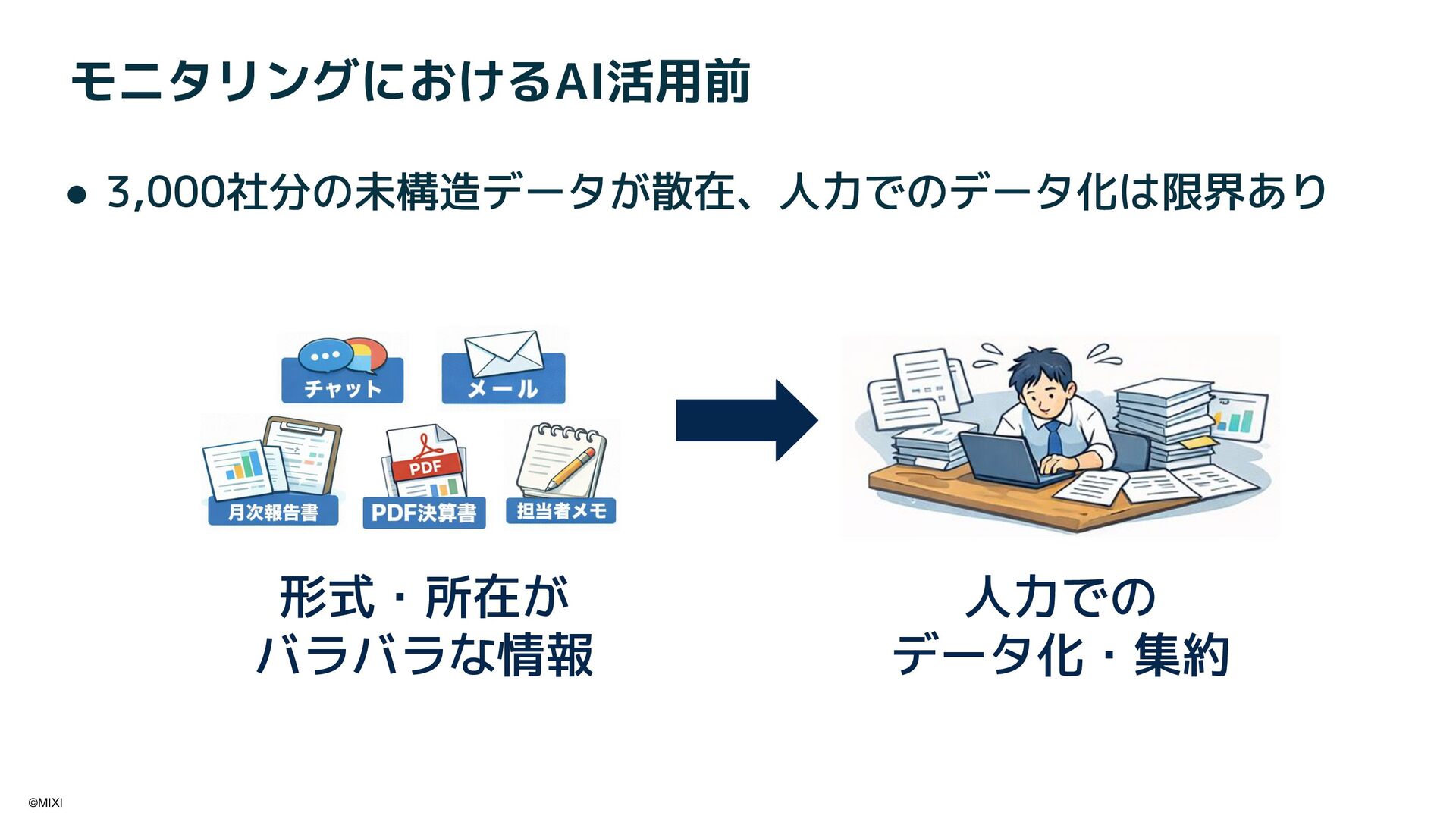 投資プロセス全体をAIドリブンに再設計する構想が広がる中、実際にどこから着手すべきなのか。本セッションでは、その一端として、投資ディールにおけるAI活用と、3,000社におよぶ投資先情報をAIで構造化・活用する取り組みを紹介します。構想と現場実装をつなぐ実践事例を共有します。