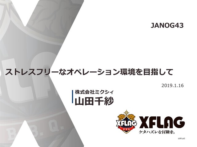 ストレスフリーなオペレーション環境を目指して 2019.1.16 山田千紗 株式会社ミクシィ JANOG43