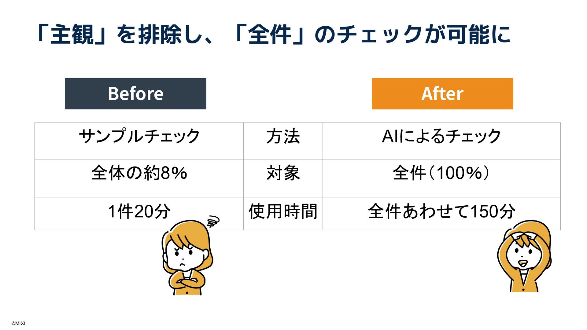 有人対応が必要な領域を対象に、オペレータの対応品質をAIで同一基準チェックする仕組みを構築。